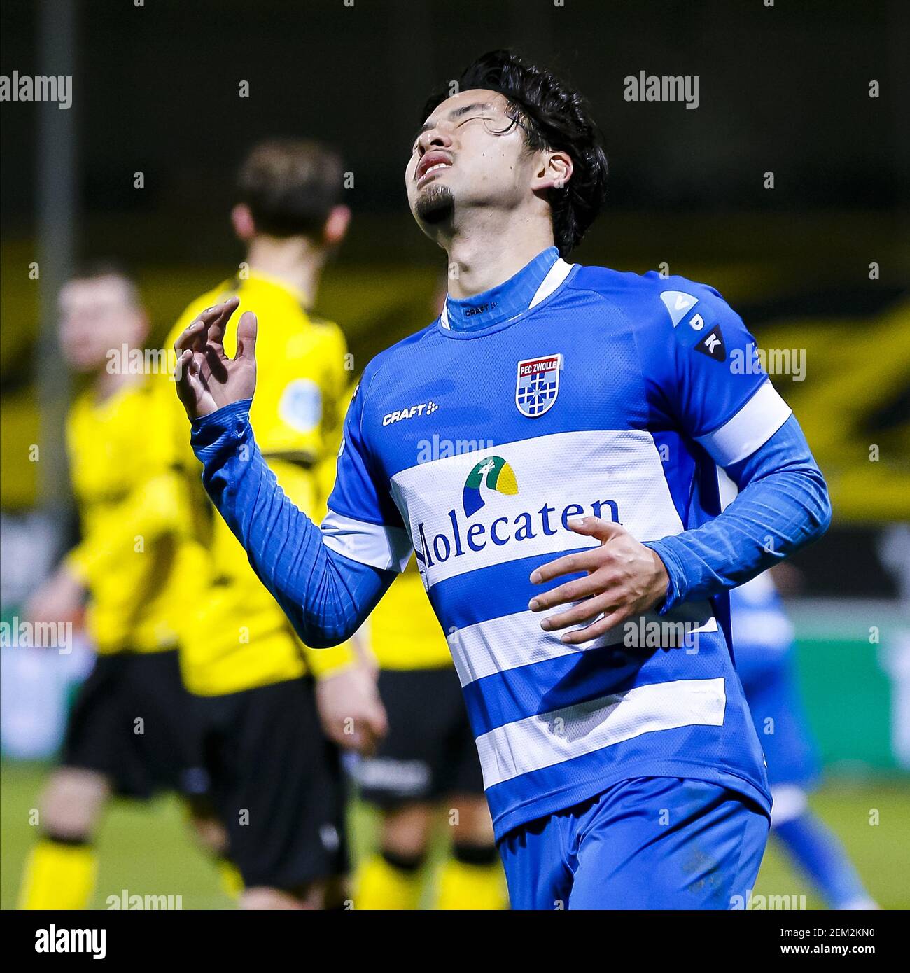 Venlo Netherlands 30 01 2022 Football Keuken Kampioen Divisie Season 2021 2022 During The Match Vvv Dordrecht Vvv Venlo Player Rayan El Azrak Scores The 2 0 And Celebrating The Goal Photo
